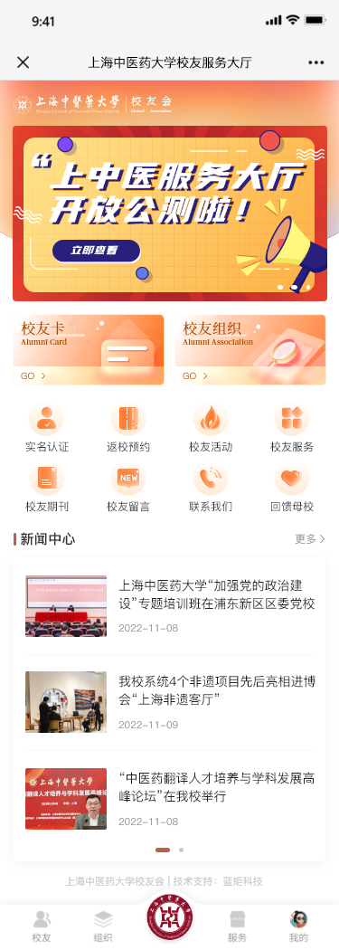 为进一步畅通校友与母校的联结渠道,提升校友服务的便捷性与专业性,上中医校友服务大厅正式开启公测。服务大厅整合多项核心服务功能,为全球上中医人提供一站式线上服务,助力校友随时随地感受母校关怀,畅享专属权益。