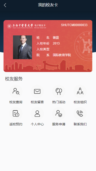 扫描下方二维码进入上中医校友服务大厅: